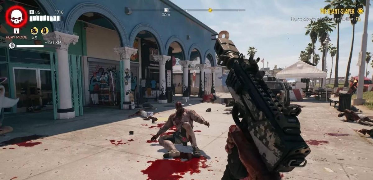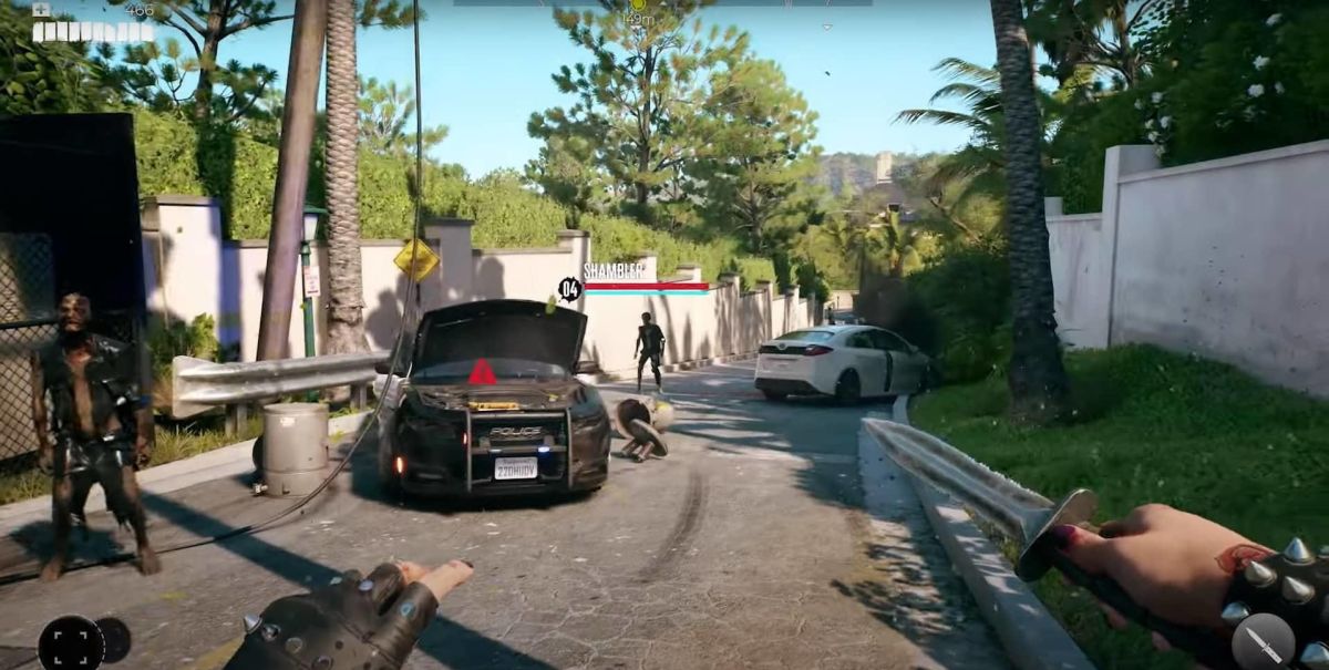Selve zombie-drepingen som står i det absolutte senter av Dead Island 2 er heldigvis veldig veldig tilfredstillende. Såpass tilfredstillende at på tross av en story som var tynnere enn baren jeg hadde i 7-klasse, så hadde jeg det masse gøy med spillet. Du har flust av måter å få zombie-innvoller og hoder til å fly veggimellom fra Bel Air til Venice Beach. Du skal ikke gå mange skrittene uten å se oljetønner, strømledninger, slimdammer, bilbatterier, gassbeholdere og annet snop som du kan skyte på for å sette avgårde en kaskade av kaos. I våpenarsenalet har du bortimot alt som går an å veive med. Kniver, økser, balltre, spyd, sverd, biljardkø, skiftenøkkel.
