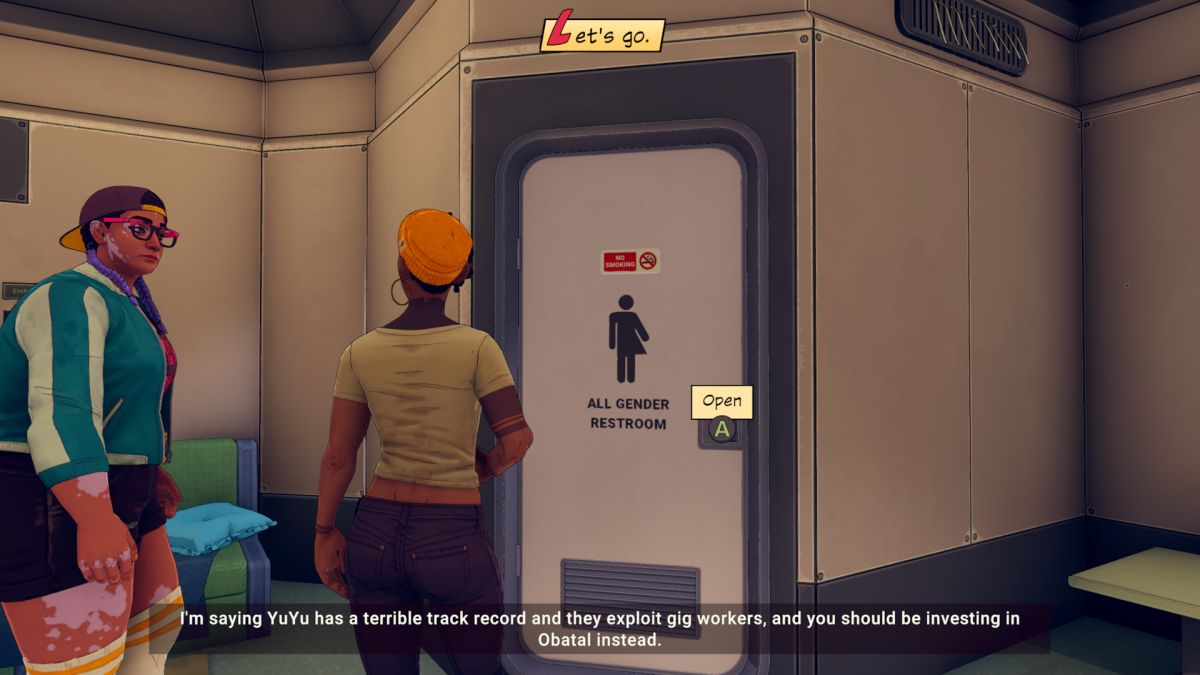 Det mest oppsiktsvekkende med Dustborn er egentlig hvor progressivt det er - og jeg hyller det. Dette kommer til å dele spillerbasen som spiller spillet, men jeg syns personlig det er forfriskende og fint å spille et spill der jeg både forholder meg til og forelsker meg i karakterer som bruker kjønnsnøytrale pronomen som they / them og som har et flytende forhold til kjærlighet og legning. Spesielt når jeg opplever karakterene som velskrevet og universet de befinner seg i som et interessant sted jeg har lyst til å være i og utforske - og når manuset er godt og gjennomført. Jeg tror på karakterene, jeg tror på det de føler, og jeg tror på det de sier. Det er det ikke sikkert at du kommer til å gjøre, men jeg gjør det.