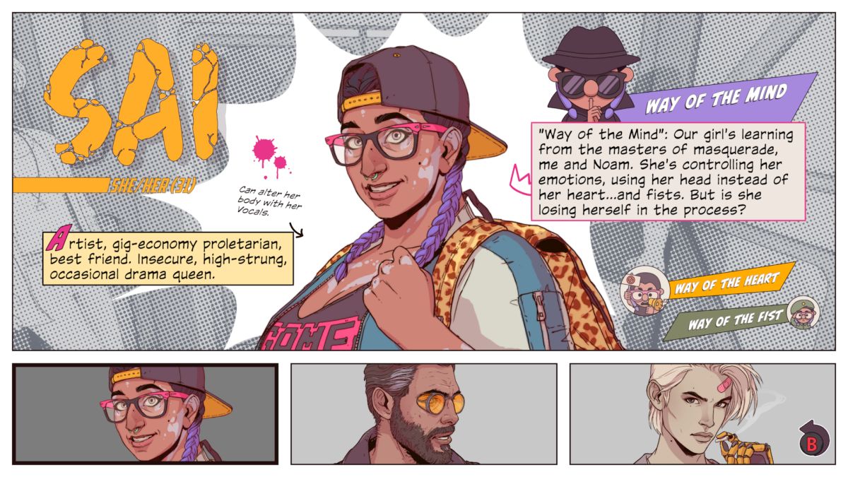 Grafikken i Dustborn er nydelig, og den cel-shadede tegneseriestilen appellerer til meg på alle måter. Hvert kapittel du spiller gjennom oppsummeres i animert tegneserieform, og gir deg som spiller en oversikt over hvor mange prosent av spillerne som fikk samme utfall som deg - ikke ulikt Life is Strange 2. Sånn sett oppleves det som et rimelig rett frem interaktivt eventyrspill, right?