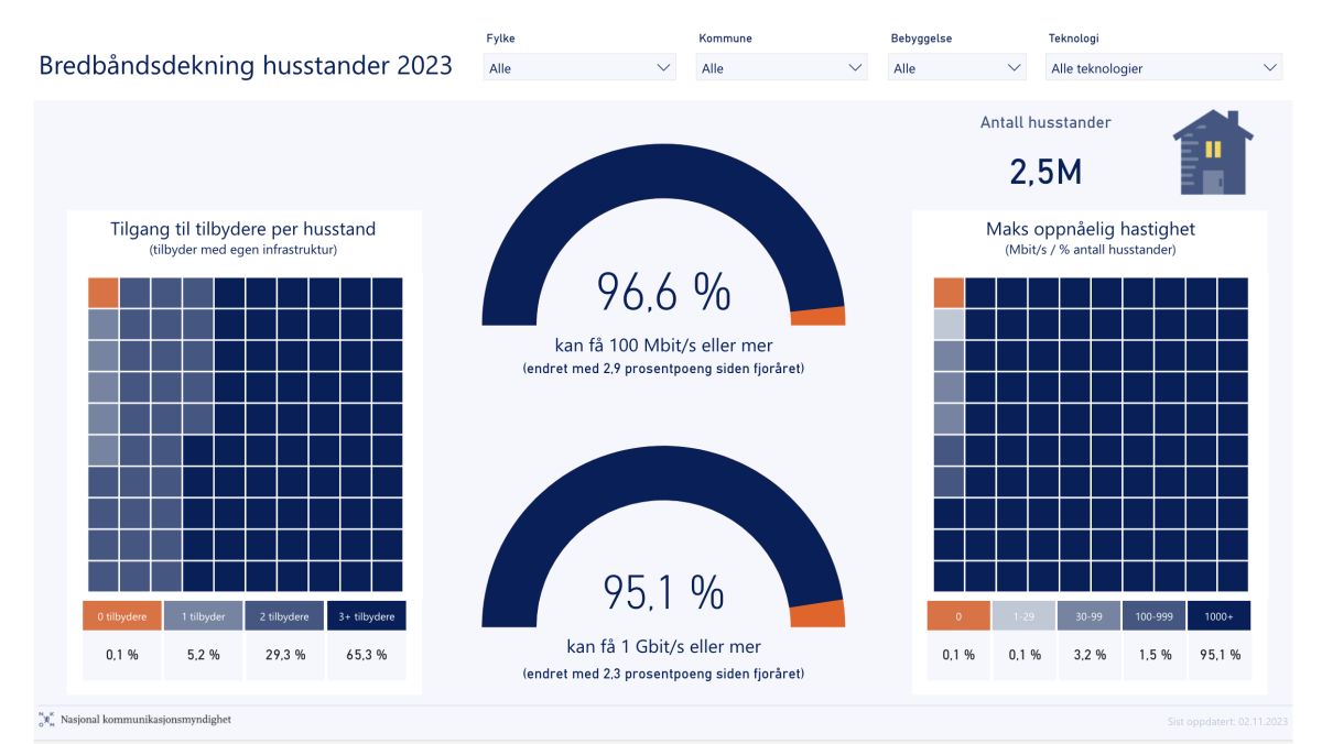 Direktør i Nasjonal kommunikasjonsmyndighet, Pål Wien Espen, informerte i 2023 om at rundt 96% av Norges befolkning nå har tilgang på 300 Mbit/s hastighet på bredbånd, men det betyr ikke at alle benytter seg av muligheten - tvert imot.