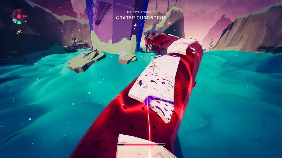 Disse bosskampene er som dratt ut av det nydelige Shadow of the Colossus, men er løst enda bedre her. For i stedet for å klatre, glippe og miste taket, skater du deg vei over skjelldekte overflater, skyter deg gjennom luften som en pil og grinder deg vei til det endelige målet: Å stikke et spyd gjennom monsterets øyeeple så det faller til jorden med voldsomme brak.