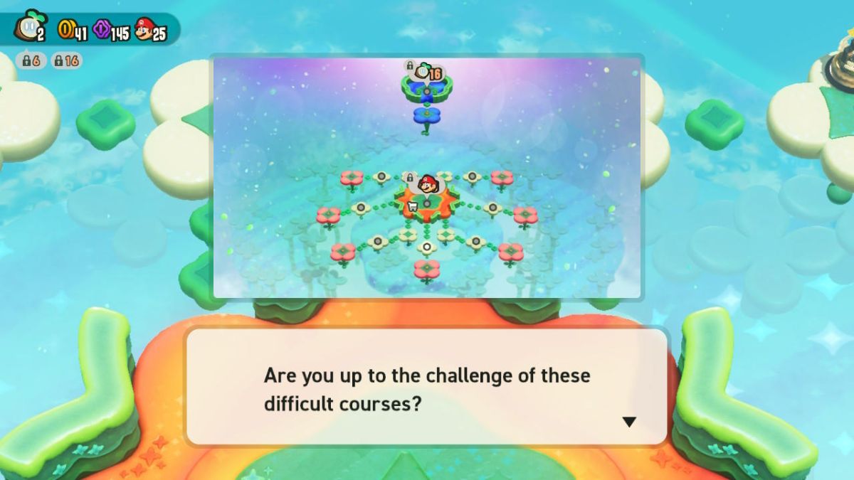 For selv om oppsettet fantastisk nok minner om overworlds vi kjenner fra Super Mario 3 og World, der man reiser til forskjellige områder med egne historier og varierte nivåer, har hver eneste bane en vri denne gangen, som oppstår idet man plukker opp en «Wonder Flower». Jeg nevnte tidligere at utviklerteamet hadde fri deadline for å utvikle disse ideene, og ifølge IGN stoppet de ikke før de hadde over 2000 av dem. Av 2000 ideer plukket de ut de aller beste og implementerte i spillet - som har ført til at det som på overflaten oppleves som gode plattformbaner i løpet av sekunder forvandles til musikalnumre, stealth missions, quizshow, bullet hell-spill eller noe som minner om GTA1 og 2. For å nevne en brøkdel av alt det sjuke, magiske, morsomme og endorfinfremkallende du opplever i Super Mario Wonder.