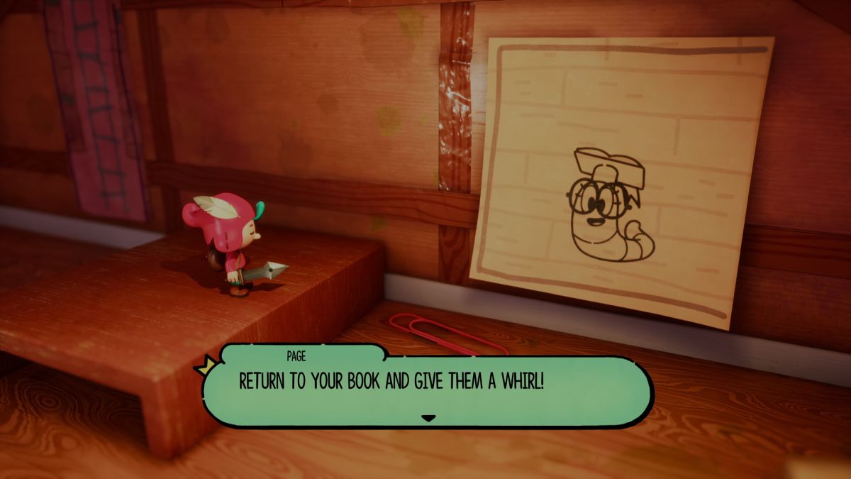 Greia er at jeg skjønner 100% hvor dette kommer fra. The Plucky Squire er utviklerne i All Possible Futures sitt første spill som eget studio, etter å ha blant annet jobbet på mange av spillene i Pokémonserien. Og er det noe jeg har kritisert Pokémonspillene for gjentatte ganger, er det at den første timen ofte er til å rive av seg håret av, men der går det heldigvis over.