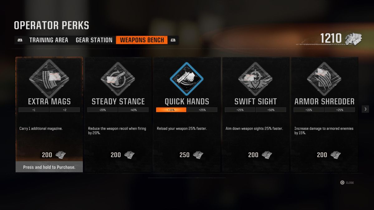 I tillegg til de mer lineære oppdragene, vender spillet stadig tilbake til denne Skyfall-aktige basen jeg har nevnt et par ganger. Penger du finner underveis i kampanjen, ved å løse puzzles som åpner safer eller knuse deg gjennom valgfrie eliteminibosser, bruker du i denne basen. Du kan oppgradere våpenlagre, treningsfasiliteter og rasjonslagre, som igjen gir deg muligheten til å bli sterkere, raskere, fetere og enda mer dødelig. Dette fungerer helt på samme måten som arbeidsbenkene i The Last of Us - og er et velkomment insentiv for å utforske nivåene du spiller etter ressurser.