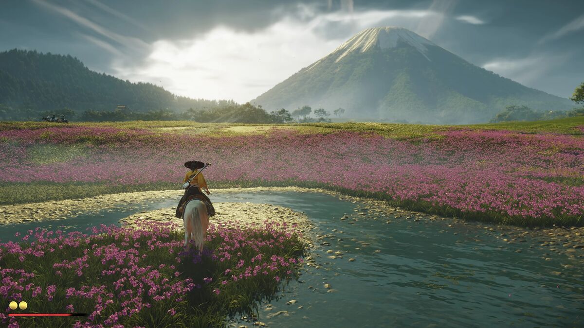Som spiller reiser du gjennom Ezo med fjellet Yōtei som bakteppe. Og før jeg fortsetter må jeg bare si først som sist: spillet er j**lig pent. Det er liten forskjell mellom cutscenes og gameplay, og allerede fra starten får jeg skikkelig følelse av virkelighetsflukt, eller escapism, i aller beste forstand. Det er fantastisk å kunne forsvinne inn i denne vakre, men brutale verdenen.