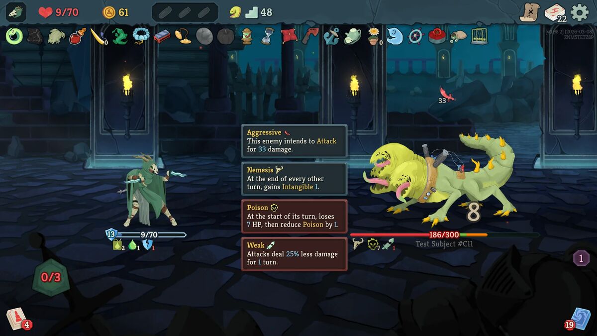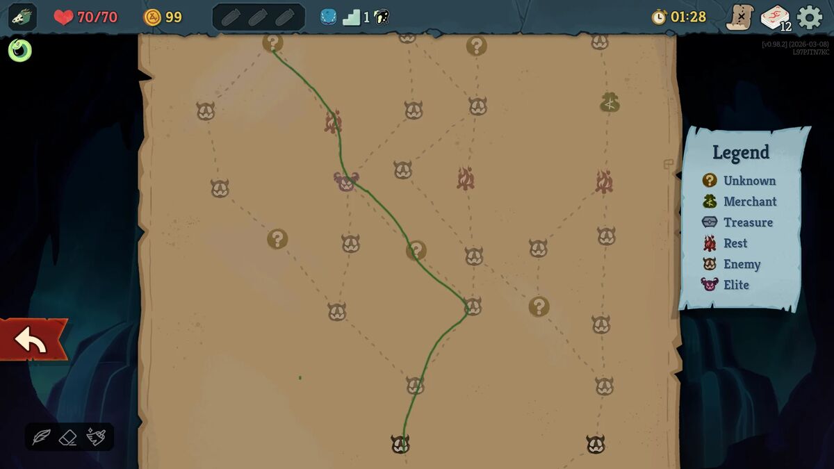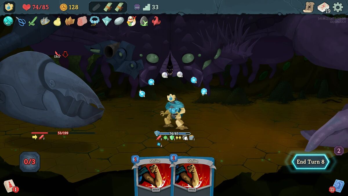 Nei, det er det ikke. For etter halvannen til to timer åpner spillet seg for meg, og begynner å vise meg alt innholdet som allerede ligger her. Og selv om en del av de grafiske elementene fortsatt er naive strektegninger og markert som “placeholders”, i tillegg til at jeg får beskjed om at noen av de opplåsbare belønningene jeg åpner “kommer senere i early access-perioden” er det lite annet som avslører at dette er et uferdig spill. Slay The Spire 2 bobler nemlig over av skaperglede, og formelig sitrer etter å vise meg hva det har å by på.